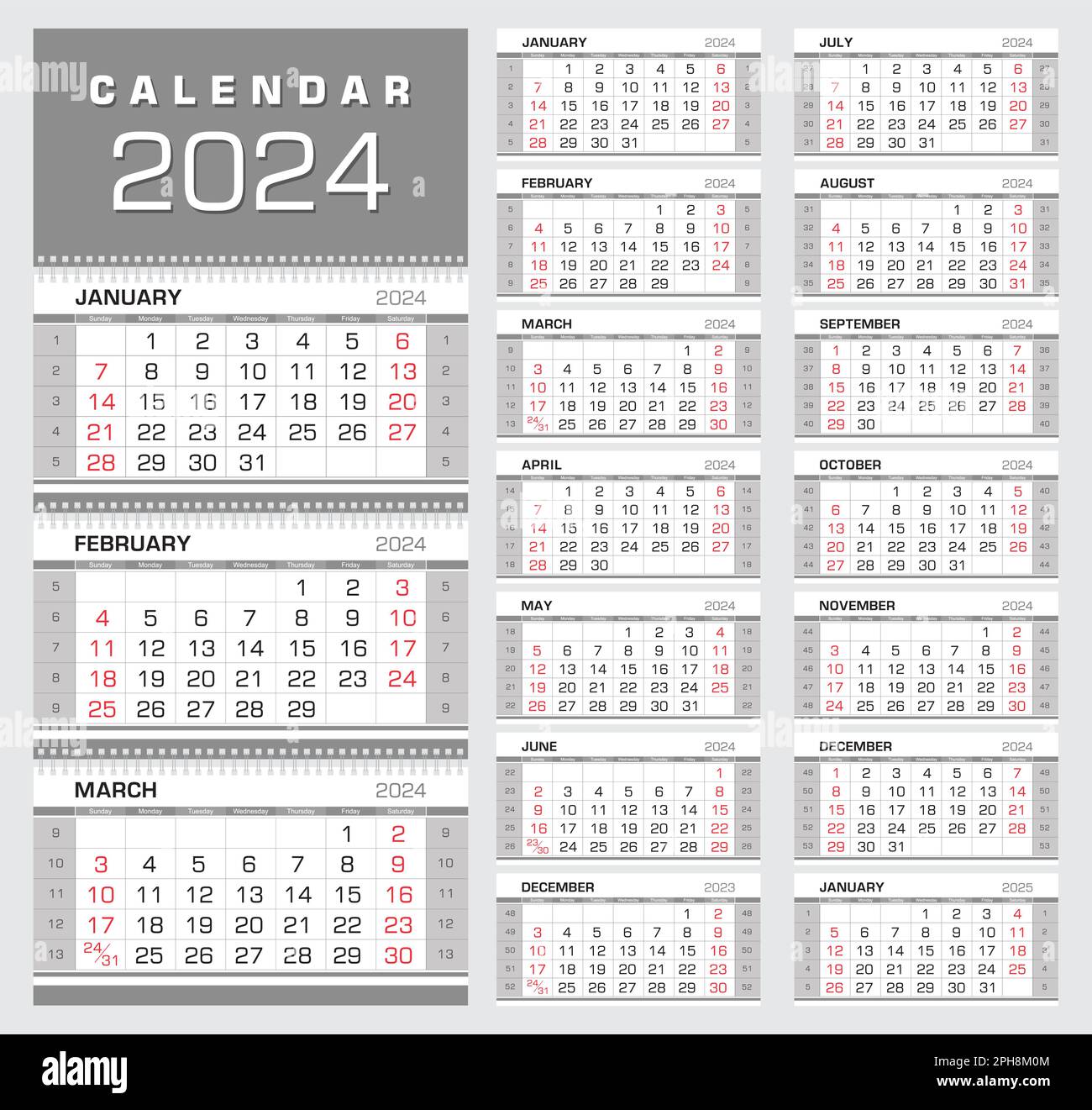 Calendario 2024. Calendario trimestrale della parete con numeri di