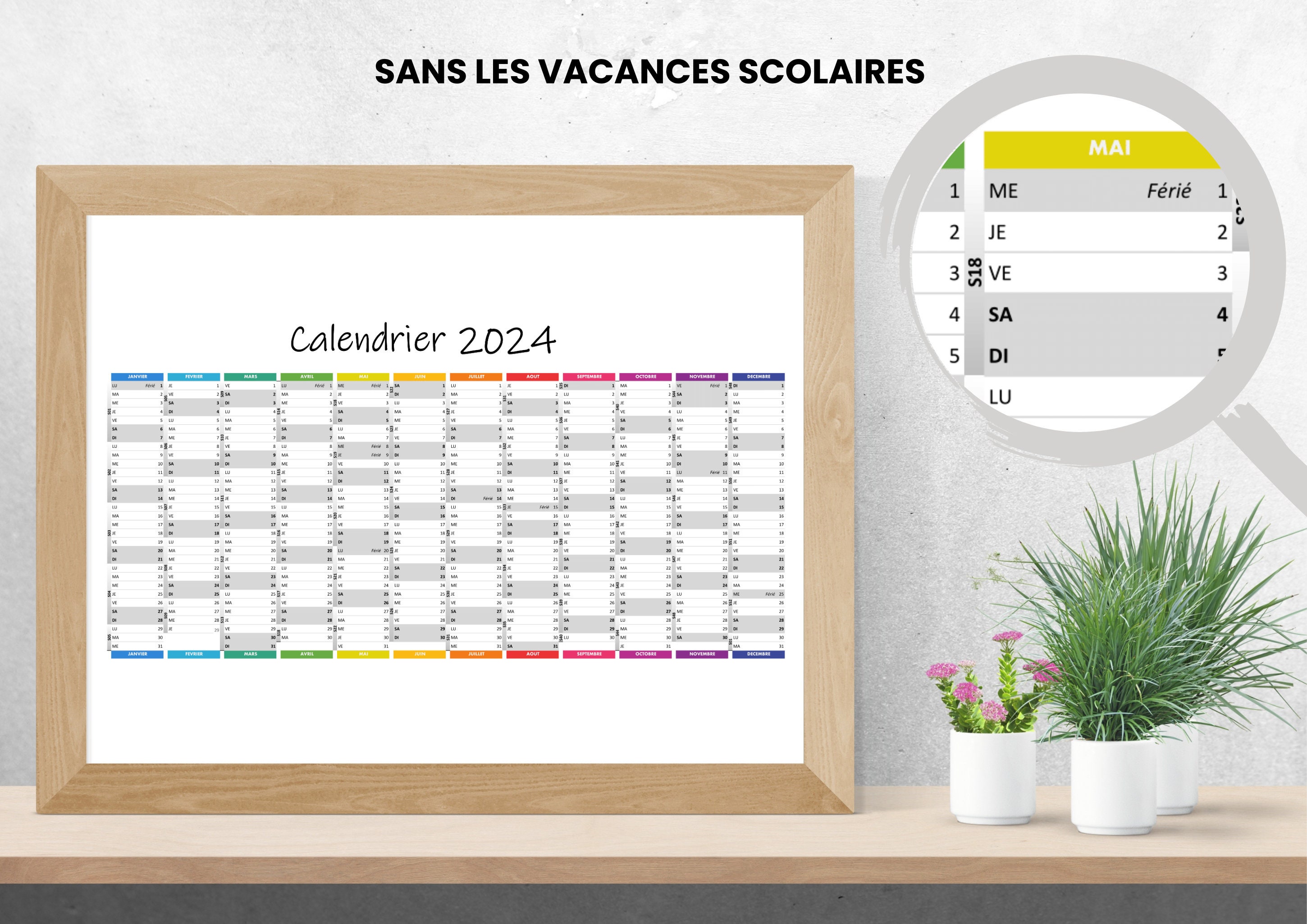 Calendrier 2024 imprimable avec vacances scolaires et jours Etsy